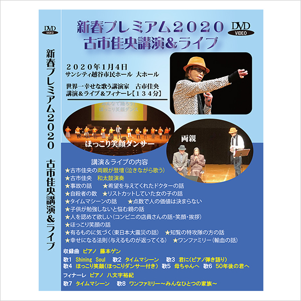 Goods -グッズ- DVD 新春プレミアム2020古市佳央講演会&ライブ3,500円(税込)ご購入はこちら 新春プレミアム2019古市佳央講演会&ライブ3,000円(税込)ご購入はこちら 新春プレミアム2015古市佳央講演会2,000円(税込)ご購入はこちら CD ワンファミリー/他2曲1,300円(税込)ご購入はこちら 君に/他3曲1,500円(税込)ご購入はこちら タイムマシーン/他4曲2,000円(税込)ご購入はこちら 音楽配信 ワンファミリー/他2曲1曲255円~配信サイトはこちら 著書 這い上がり絶版のため、ご購入は中古にてお求めください。ご購入はこちら 君の力になりたい絶版のため、ご購入は中古にてお求めください。ご購入はこちら その他 シール ほっこり笑顔 似顔絵シリーズ10枚入り 500円(税込)ご購入はこちら